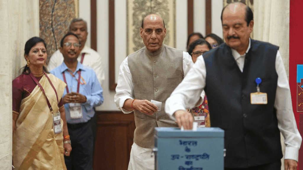 उप राष्ट्रपति पद के लिए सी. पी. राधाकृष्णन, सत्तारूढ़ राष्ट्रीय जनतांत्रिक गठबंधन (राजग) के उम्मीदवार हैं, जिनका सीधा मुकाबला विपक्ष के प्रत्याशी सुदर्शन रेड्डी से है। इस बार दोनों उम्मीदवार दक्षिण भारत से हैं। राधाकृष्णन तमिलनाडु से जबकि रेड्डी तेलंगाना से हैं।