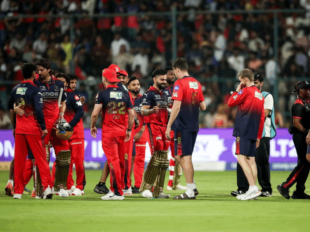 रॉयल चैलेंजर्स बेंगलुरु प्लेइंग XI : विराट कोहली, फिलिप साल्ट, रजत पाटीदार (कप्तान), जितेश शर्मा (विकेटकीपर), टिम डेविड, रोमारियो शेफर्ड, क्रुणाल पंड्या, भुवनेश्वर कुमार, अभिनंदन सिंह, जैकब डफी, सुयश शर्मा.