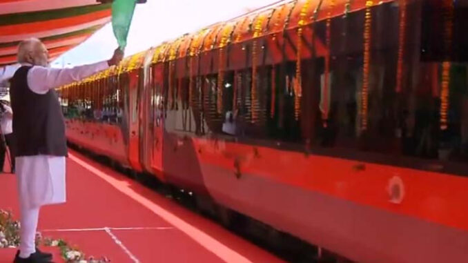 मोदी ने रेल मंत्री अश्विनी वैष्णव, जम्मू-कश्मीर के उपराज्यपाल मनोज सिन्हा और मुख्यमंत्री उमर अब्दुल्ला सहित अन्य की उपस्थिति में ट्रेन को हरी झंडी दिखाई।