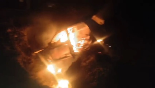 पलटते ही कार बनी आग का गोला