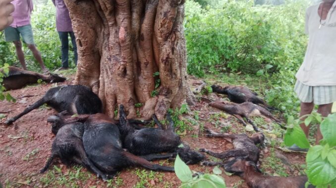 कटनी : खम्हरिया में आकाशीय बिजली गिरने से 9 बकरियों की मौत,खमतरा में लोगों के घर घुसा पानी