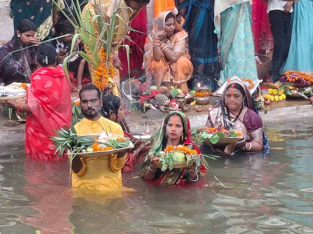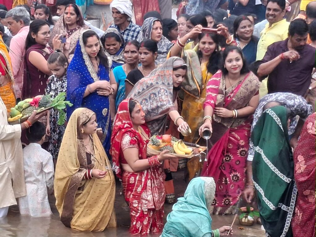 डूबते सूर्य देव को दिया पहला अर्घ्य, आज उगते सूर्य को दूसरे अर्ध्य के साथ होगा पर्व का समापन