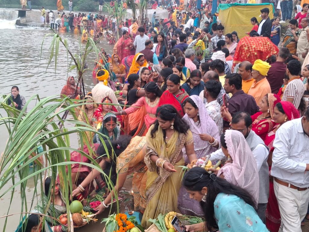 कटनी : लोक आस्‍था के पर्व छठ पर महिलाओं ने अस्‍ताचलगामी सूर्य को दिया अर्घ्‍य, घाटों पर उमड़े श्रद्धालु