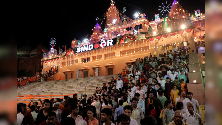 मथुरा में श्रीकृष्ण जन्मूभूमि मंदिर में ऑपरेशन सिंदूर की झलक देखने को मिली। फूल बंगला को कोलकाता से लाए गए सिंदूरी फूलों से सजाया गया। इसी फूल बंगले में भगवान विराजते हैं। आधी रात को फूल बंगला में ठाकुर जी के दर्शन के साथ श्रीकृष्ण जन्माष्टमी मनाई गई।