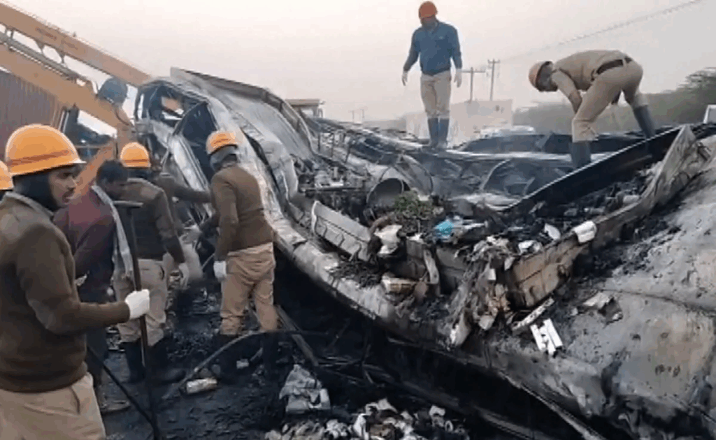 कर्नाटक : चित्रदुर्ग में ट्रक से टक्कर के बाद स्लीपर बस में लगी आग, 9 लोगों की जिंदा जलकर मौत